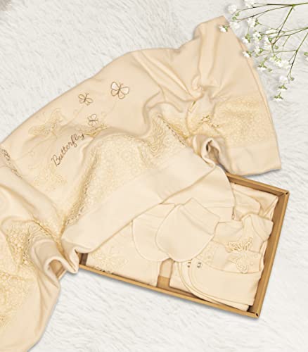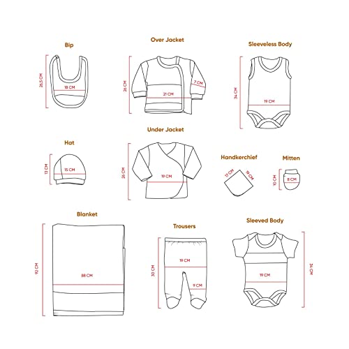 Baby Newborn Layette Gift Set – Includes bib, over jacket, sleeve body, sleeveless body, trousers, handkerchief, mitten, under jacket, hat and blanket. Affordable, high quality outfit
