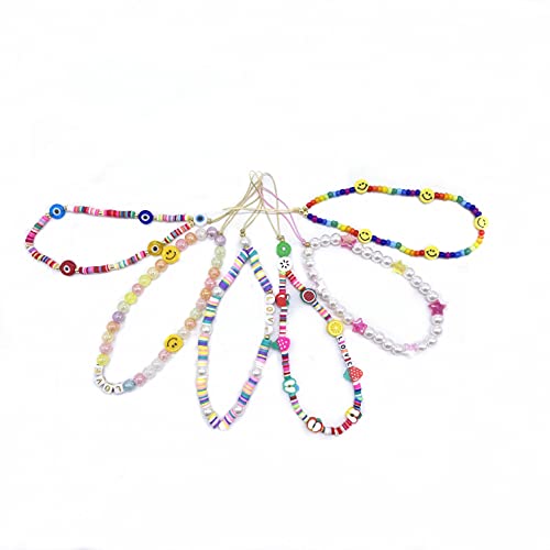 Specification: 6 PCS Beaded Phone Lanyard Wrist Strap, Colorful Bead Phone Charm, Smiley Face Fruit Star Pearl Beaded Decoration…